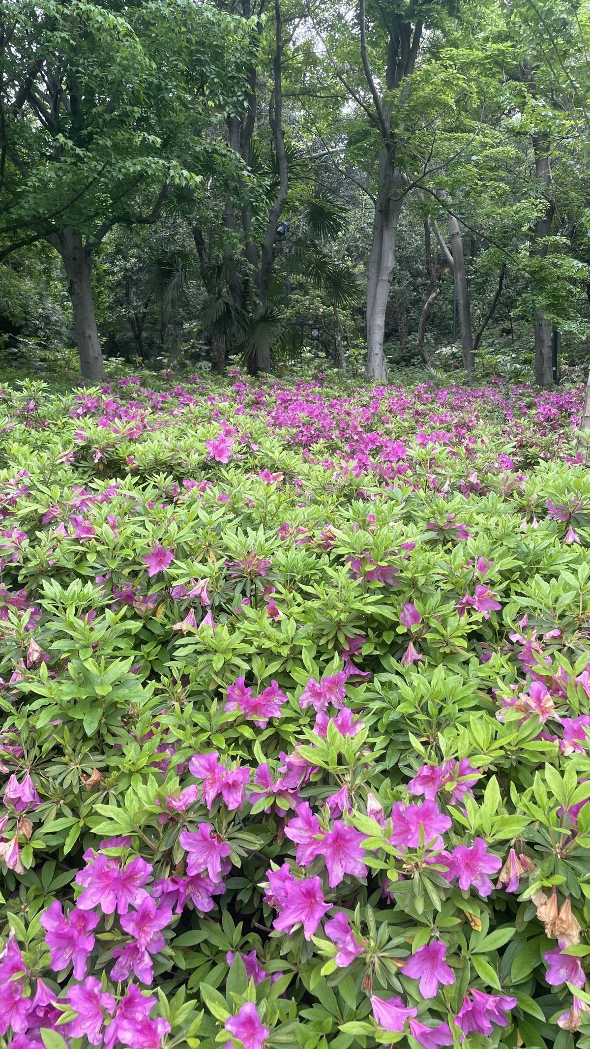 “可能杜鹃怕晒,所以北门这边更集中更热烈一些吧。”王先生平时爱养花,对杜鹃养护有所了解。